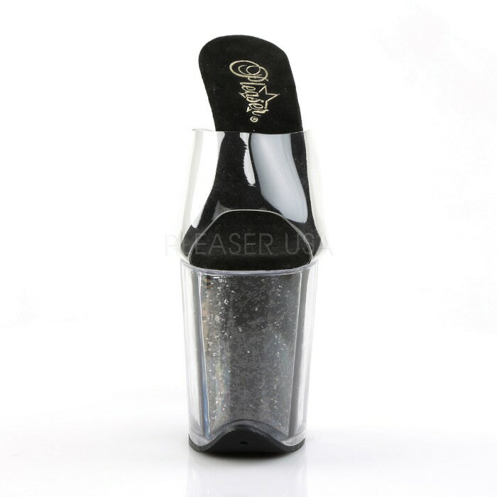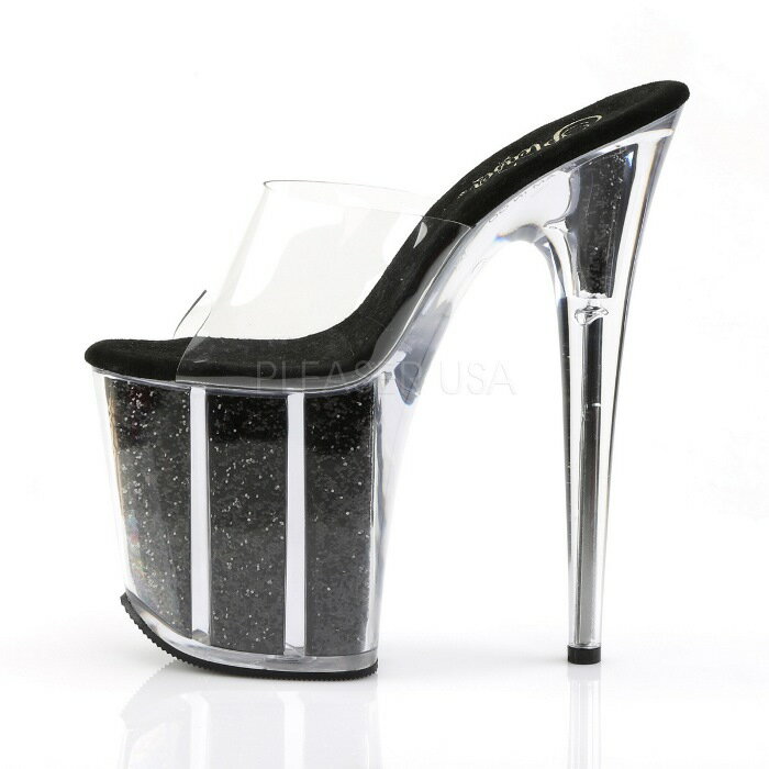 取寄せ靴 PLEASER プリーザー 厚底ミュールサンダル レディース メンズ オープントゥ 20.5cm クリアヒール クリア 黒 ブラック グリッター ラメ グリッター 入り 大きいサイズあり イベント 仮装 女装 男装 パーティー 春 夏 秋 冬 コスプレ
